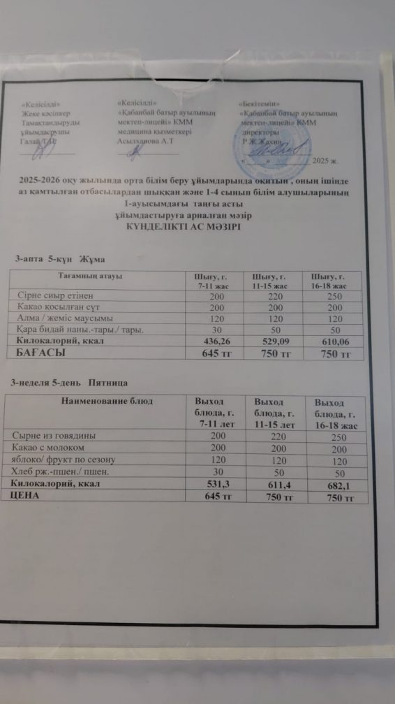 Мектеп-лицейіндегі тегін тамақтану 17.10.2025