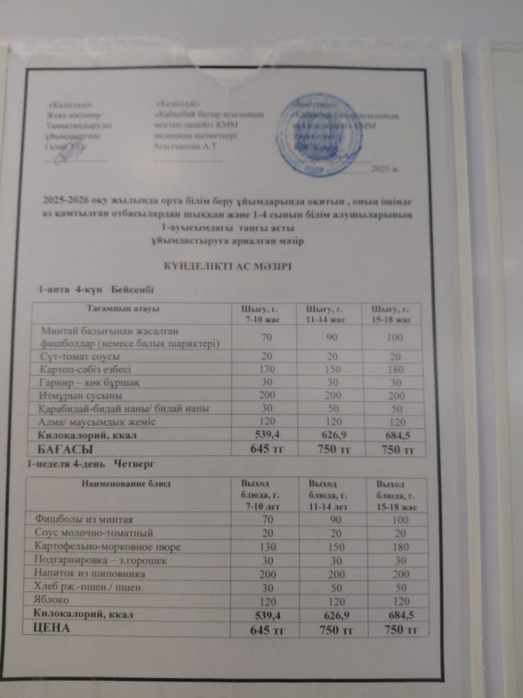 Мектеп-лицейіндегі тегін тамақтану 02.10.2025