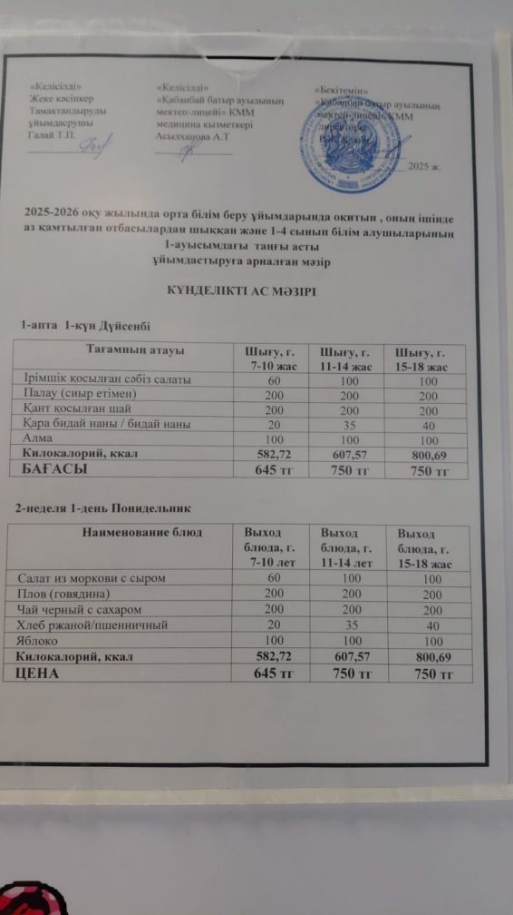 Мектеп-лицейіндегі тегін тамақтану 06.10.2025