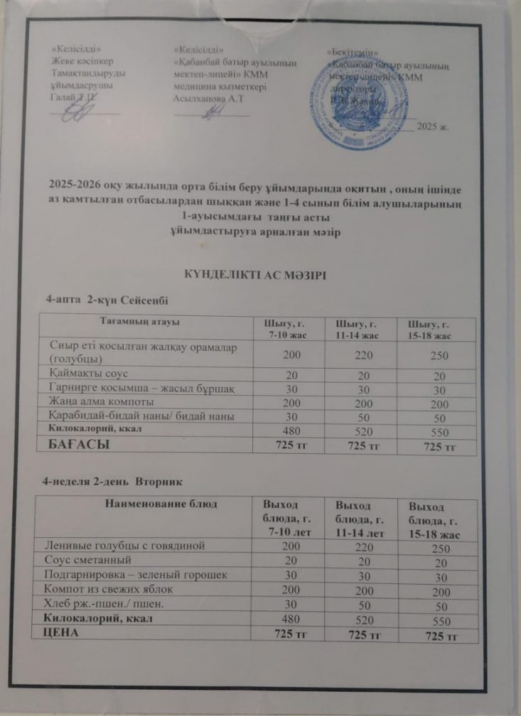 Мектеп-лицейіндегі тегін тамақтану 21.10.2025